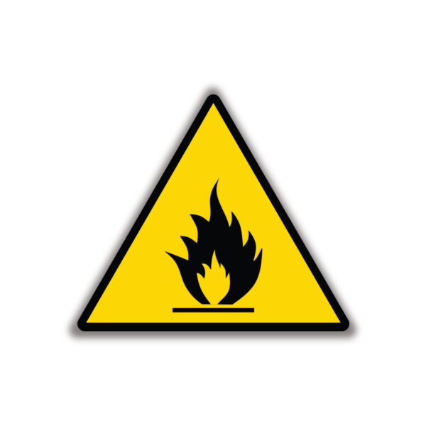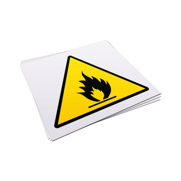 Naklejka ostrzegawcza – Materiały łatwopalne – 10x9cm