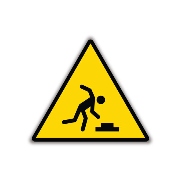 Naklejka ostrzegawcza – Niebezpieczeństwo potknięcia się – 10x9cm