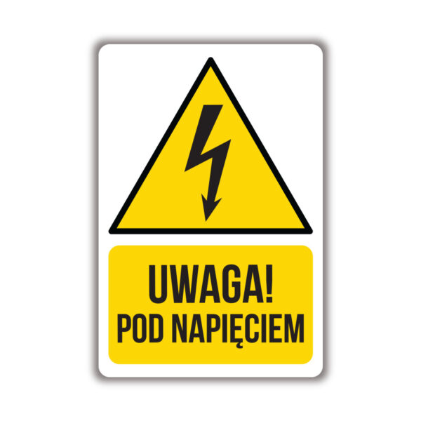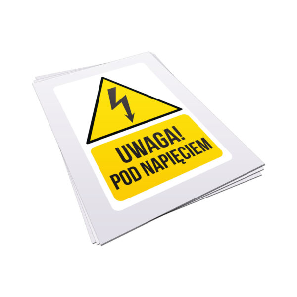 Naklejka ostrzegawcza – Uwaga! Pod napięciem – 8x12cm