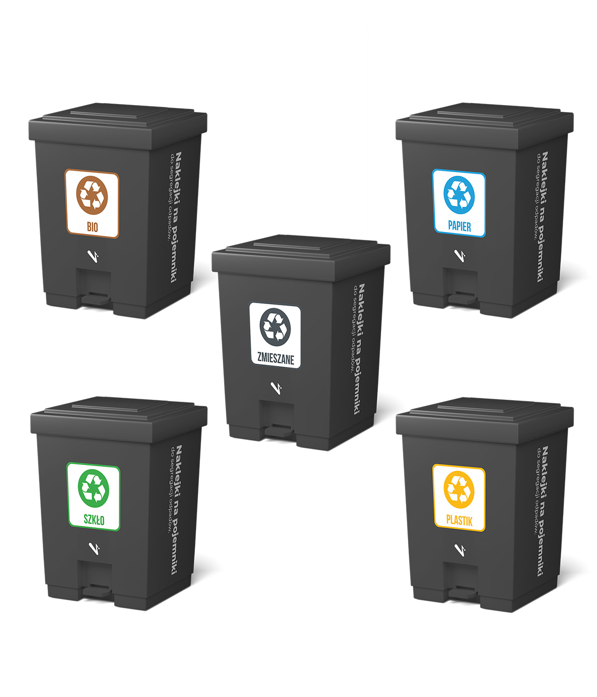 Naklejka na kosz do segregacji odpadów – Zestaw / W3