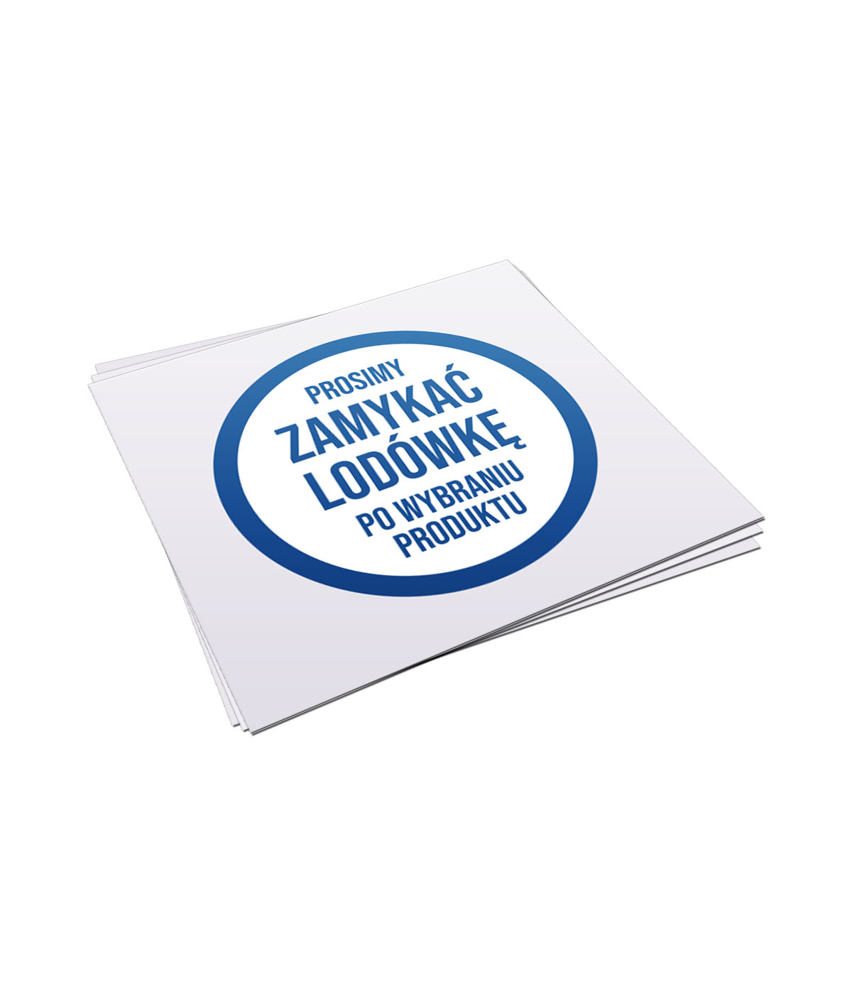 - W prosty i czytelny sposób przypomina klientom o zamykaniu drzwi, pomagając ograniczyć zużycie energii oraz zachować właściwe warunki przechowywania artykułów spożywczych.
