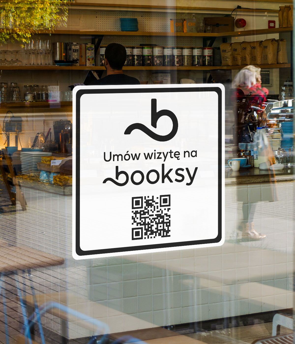 Naklejki z kodem QR i logo Booksy to prosty sposób, aby klienci mogli szybko zarezerwować wizytę w Twoim salonie. Po zeskanowaniu kodu telefonem użytkownik trafia bezpośrednio do systemu rezerwacji Booksy. Idealne do umieszczenia na witrynie, drzwiach lub w recepcji.